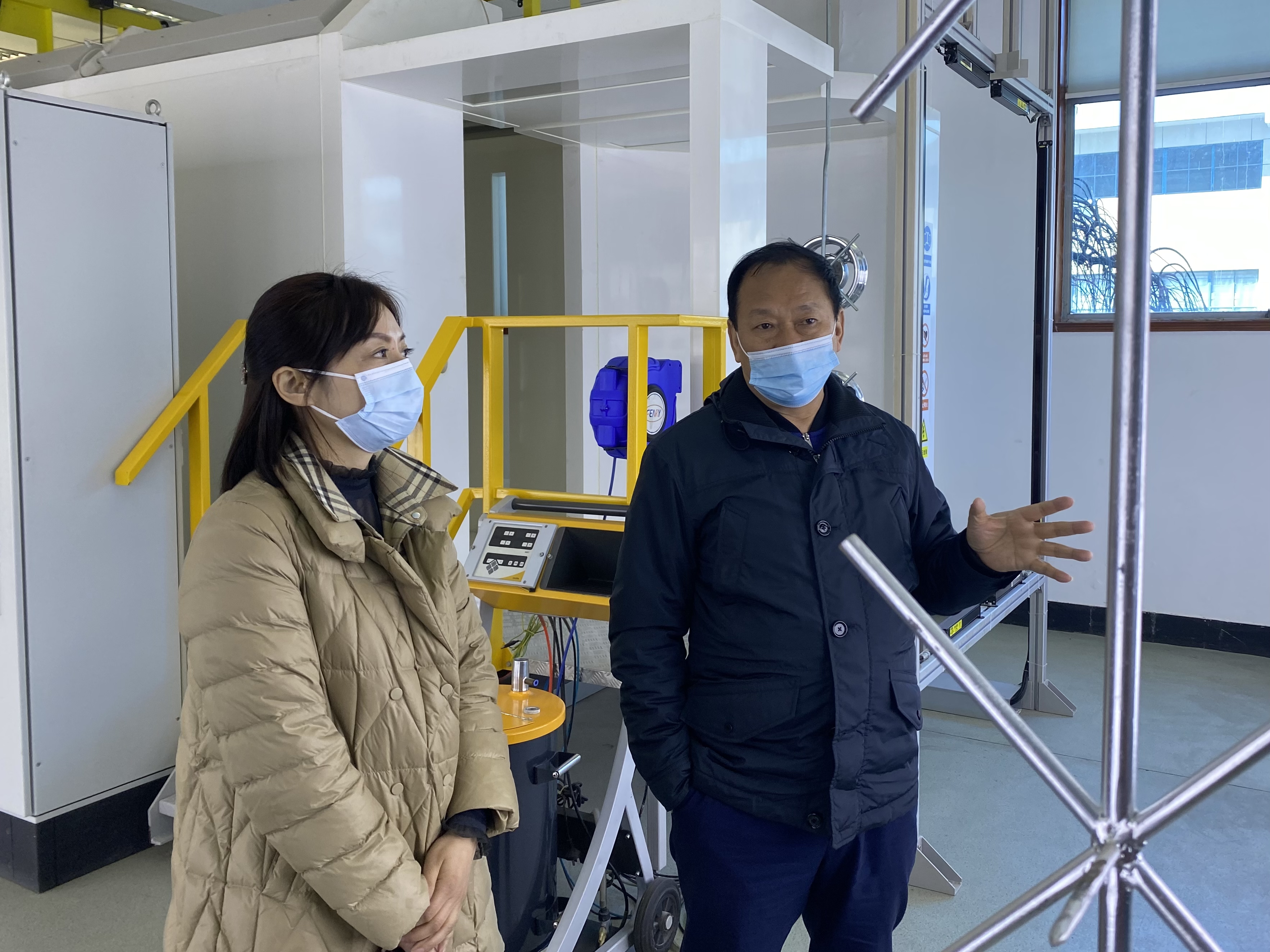 全国人大代表潘美儿在浙江明泉工业涂装有限公司调研。新华社记者吴帅帅摄