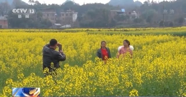 连日来,广西全州县种植的15万亩油菜花竞相开放,盛开的油菜花金黄一片,与村庄、青山相互映衬,成了初春一道亮丽的风景。油菜花海中,花开正艳,蜂飞蝶舞,游客漫步在田间小道,放飞心情,感受春天的舒适和惬意。