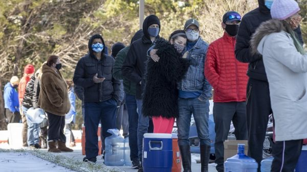 另据塔斯社纽约2月20日报道,据得克萨斯州环境质量委员会称,该州约1400万居民面临供水问题。休斯敦、圣安东尼奥和加尔维斯顿这几个大城市组织了向停水居民免费供水的行动。得克萨斯州居民将在供水点排队取水的视频发布到社交网络上。社交媒体Instagram上一个视频的发布者说:“我们现在排队的有数百人。一天下来大概有几千人。”