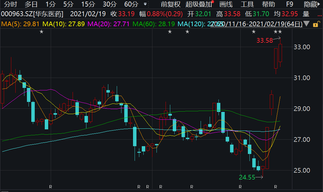 (图片标题)华东医药近期走势
