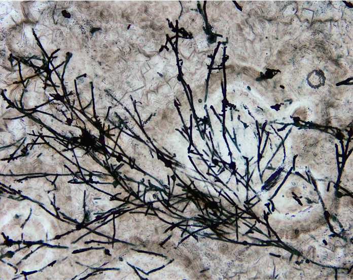 研究团队还发现,6.3亿年前的这种远古真菌类化石主要由两部分构成。一部分是长度数百微米的空心细丝,另一部分是连接在细丝之间、直径10微米至26微米的空心小球。科研人员通过与现代类似真菌的比对推测,细丝可能是真菌类生物的菌丝,而空心小球可能是用于繁殖的无性孢子。