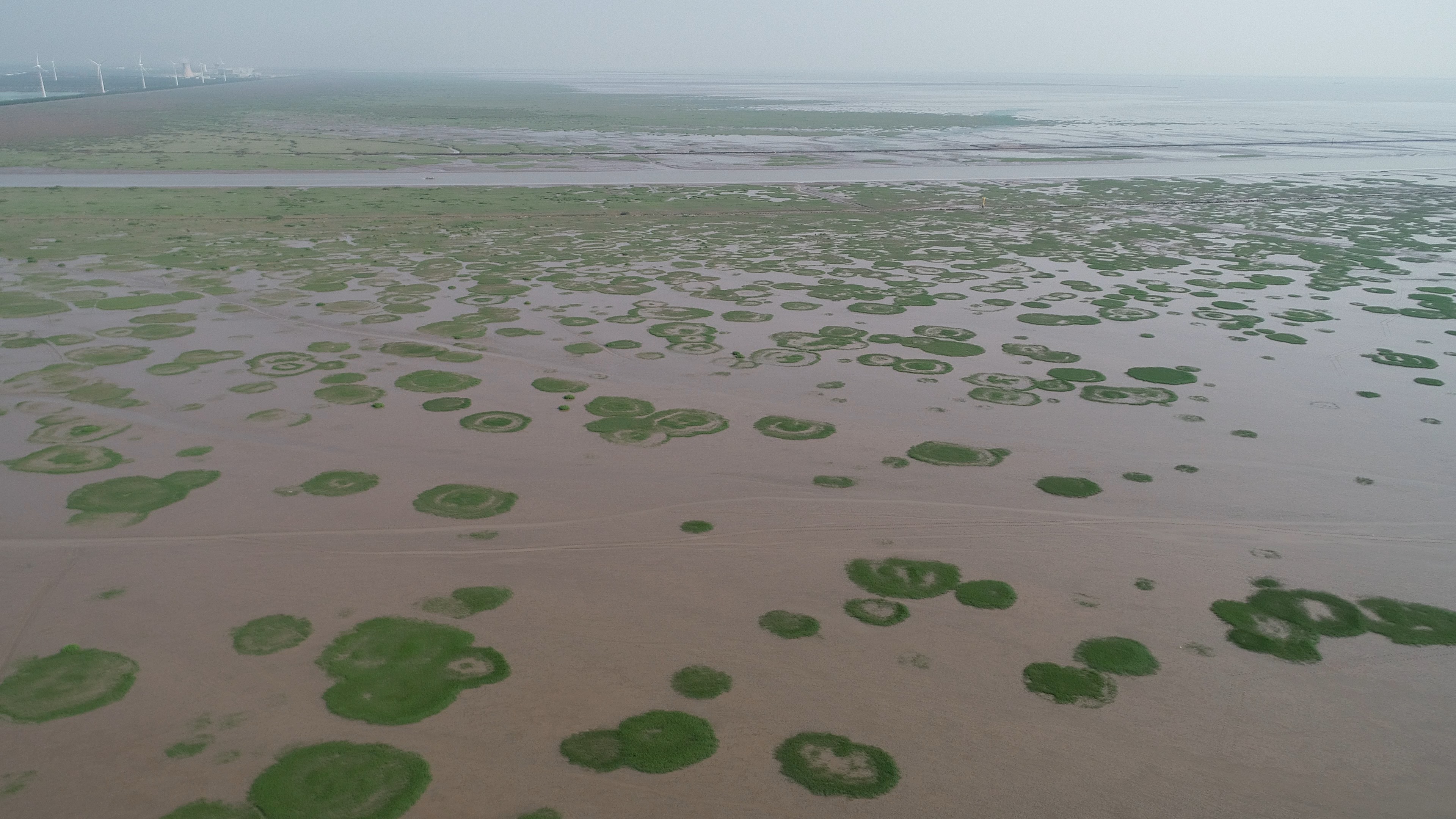 上海南汇边滩盐沼湿地生态系统中的植被“精灵圈”。刘权兴拍摄