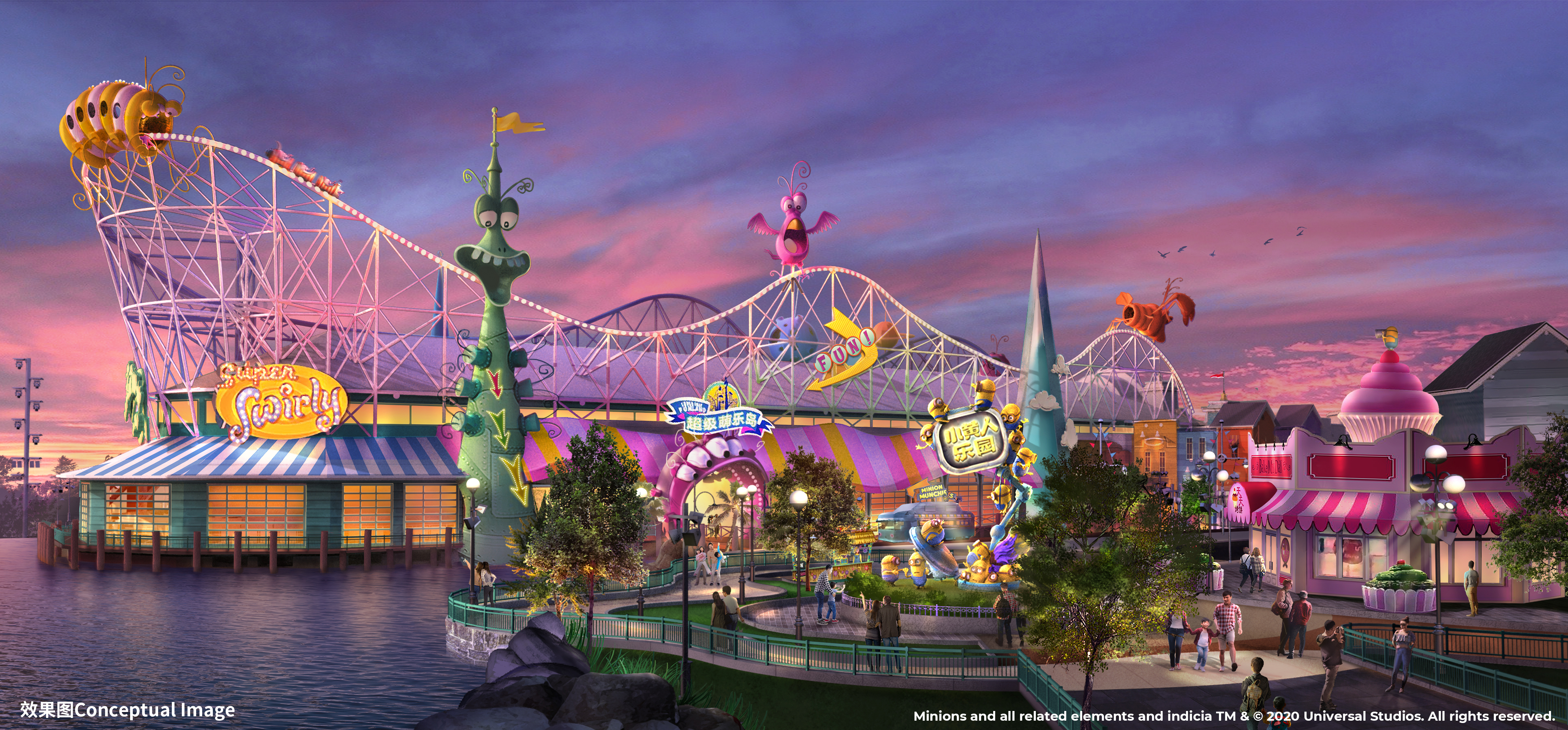 ↑北京环球度假区的小黄人乐园主题景区效果图。北京环球度假区供图