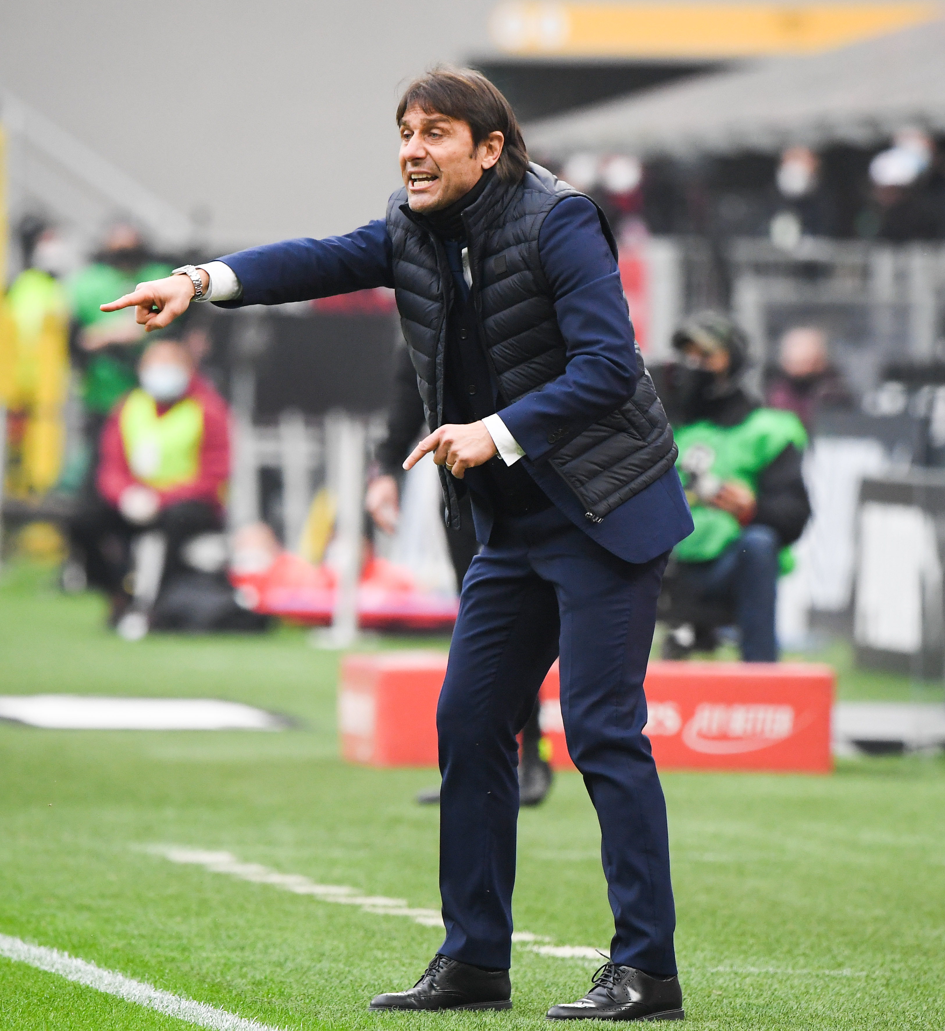 2月21日,国际米兰队主教练孔蒂在场边指挥。新华社发(阿尔贝托·林格利亚 摄)
