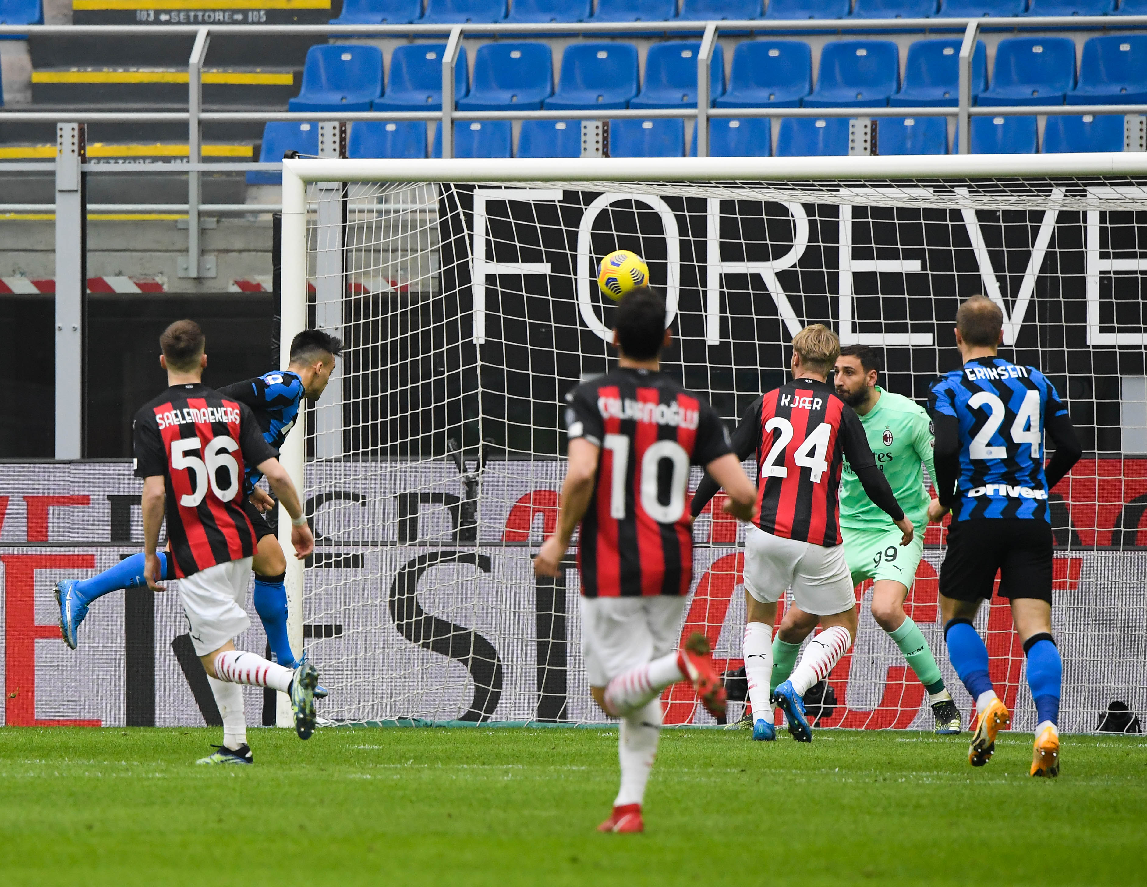 正当米兰一步步将对手压回自己的半场时,国米利用一次默契的团队配合扩大了领先优势。第56分钟,通过哈基米、埃里克森、佩里西奇等人的连续传递,劳塔罗最终近距离推射破门。米兰一拥而上的猛攻持续给国米送上防反机会。第65分钟,卢卡库中场得球后,一路奔袭至禁区推射破门,为国米锁定胜局。比赛尾声,汉达诺维奇再现神扑,挡出一记雷比奇的低射,助国米零封对手,继续领跑积分榜。
