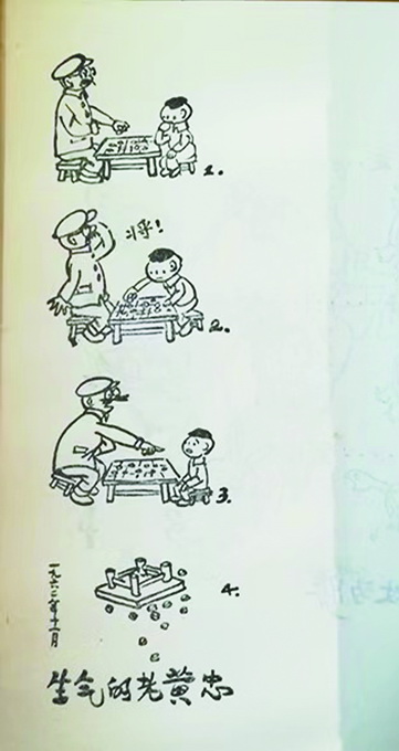 漫画,通常多是批评。这批评,倘只是一味贬责,受众就可能抵触。要在画中见出自己,发笑且有所受益,并不容易。在报刊上见到一幅《生气的老黄忠》,是爷爷孙子下棋情景。孙子思考,然后落子:“将。”爷爷指责,结果棋盘翻倒,棋子一地四散。我们在现场时,或许心有“忿忿”,可观画面,却略略自嘲。人们常常不大容易看见自己的面目。此时,漫画如镜,给了我们照见某个时态自己的机会。