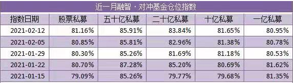 新华社上海2月22日电(记者王鹤)私募排排网22日发布数据显示,截至2月12日,股票私募整体仓位指数为81.16%,环比加仓0.31个百分点,这是该指数连续第4周超过80%。