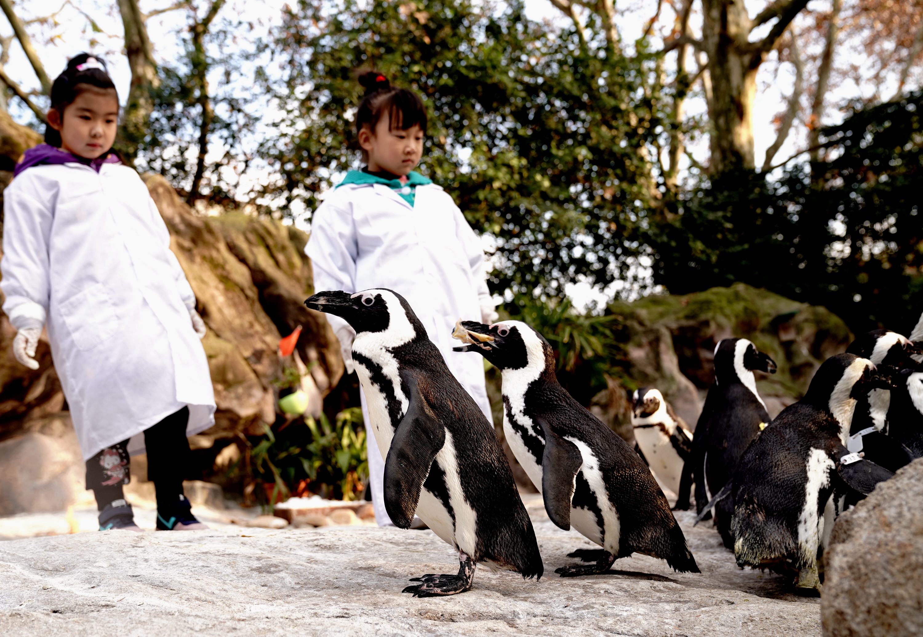 ↑12月19日,小朋友在上海动物园观察企鹅习性。新华社记者张建松摄
