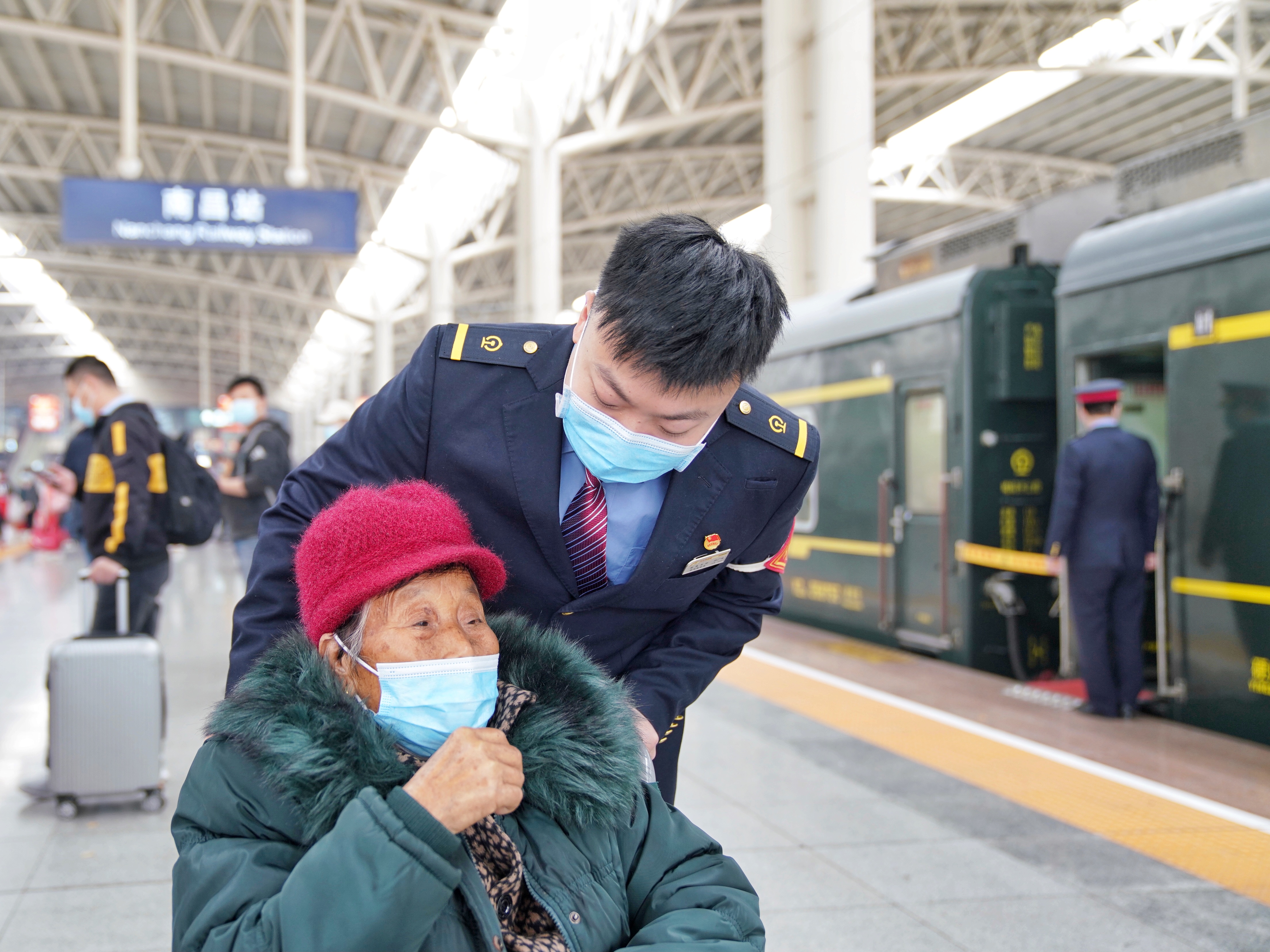 帅广鸣正在护送重点旅客。(南昌火车站供图)