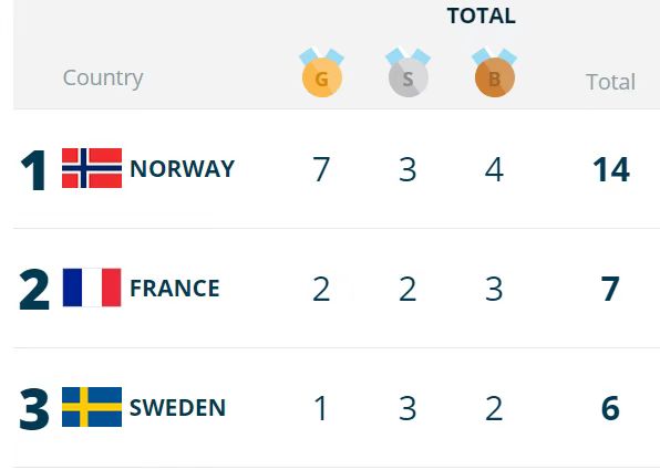 在21日进行的女子12.5公里集体出发比赛中,奥地利选手豪泽在射击环节表现完美,用时36分05秒7到达终点,拿下该项目金牌。奥地利队也凭借这一关键金牌上升至奖牌榜第四位。同样获得1枚金牌的瑞典队与捷克队依照奖牌数差异分别排在第三与第五,获得2枚金牌的法国队排在第二。