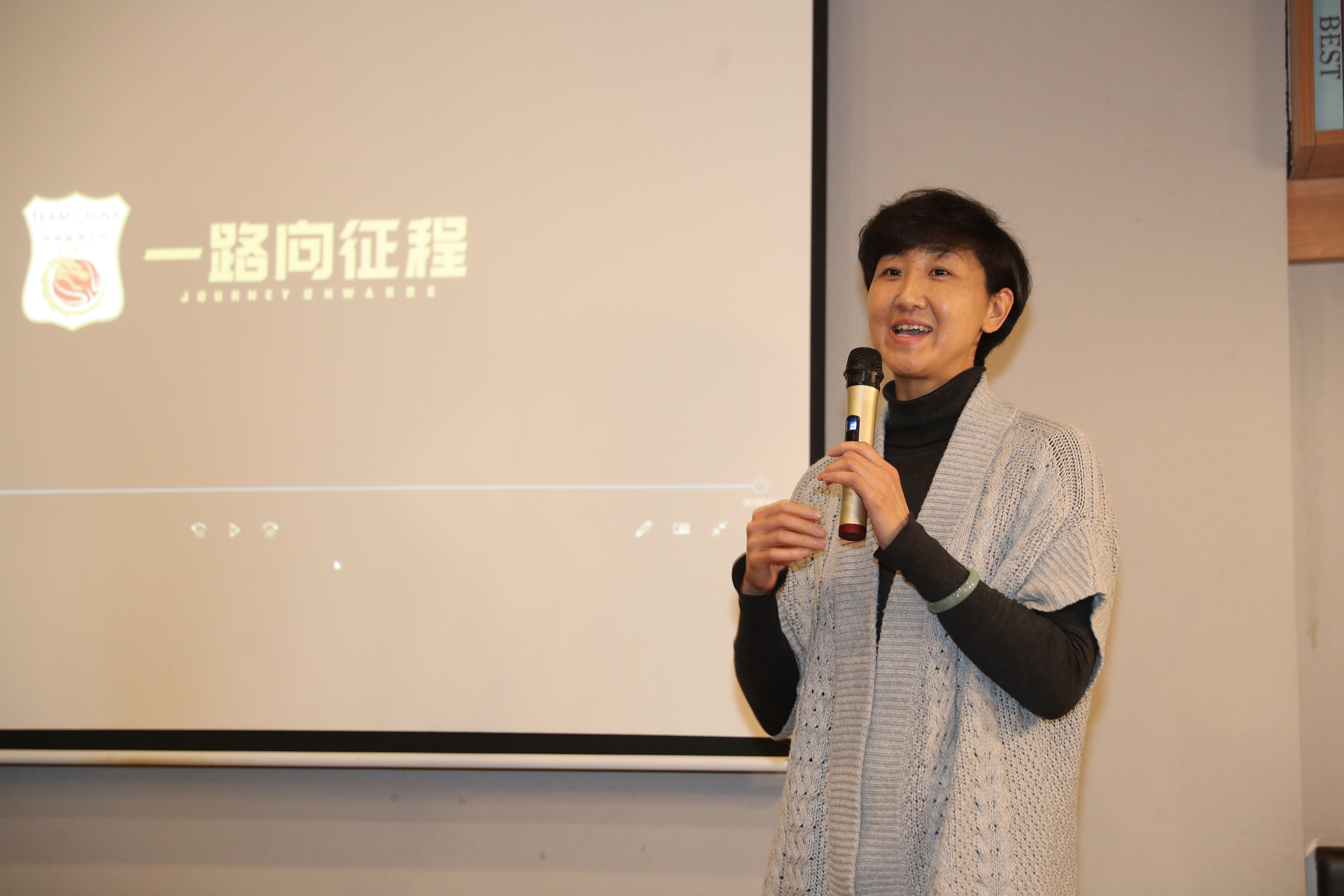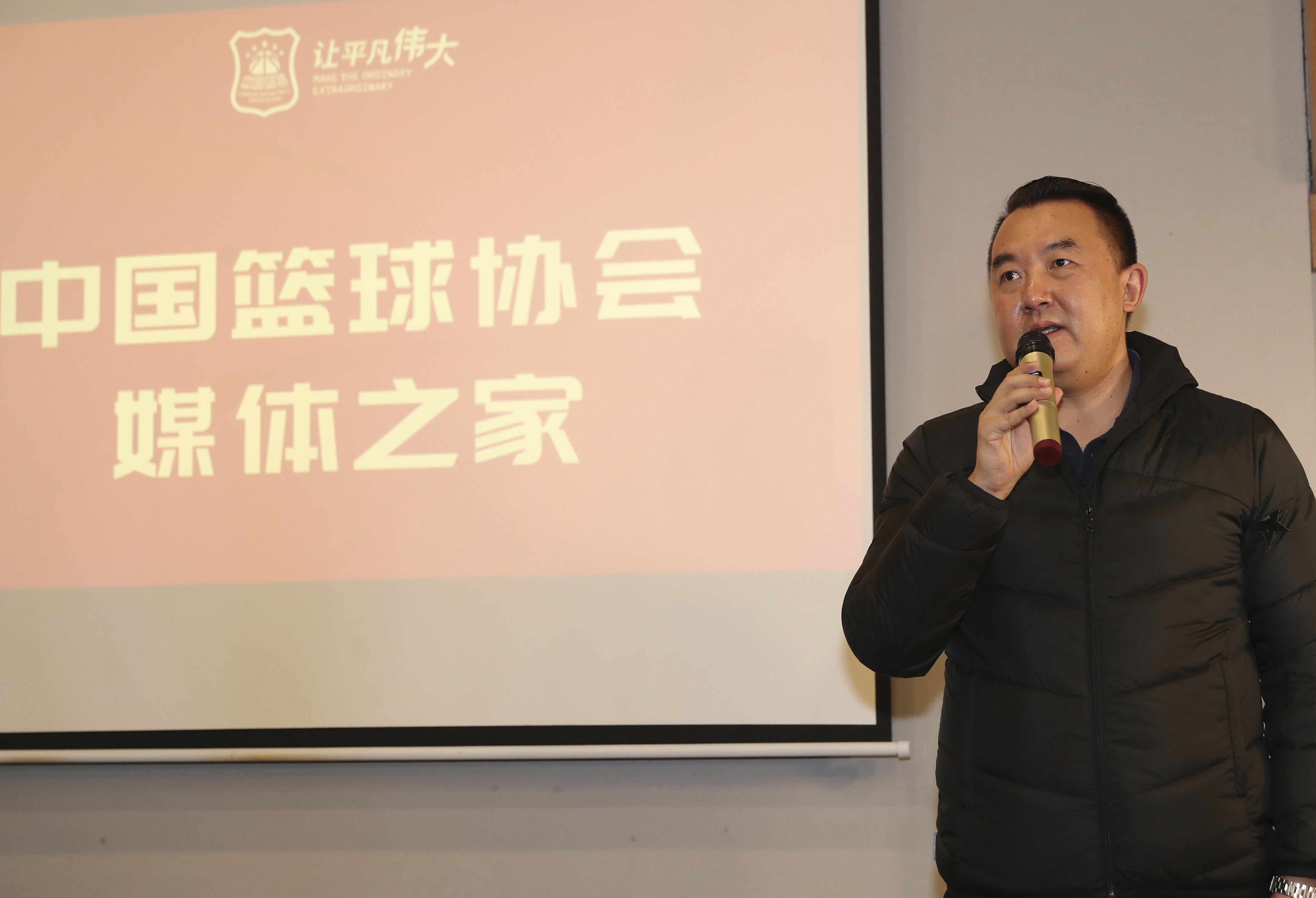 中国篮协国家队管理与外事部部长徐岚在活动上介绍国家集训队春节备战情况。新华社记者孟永民摄