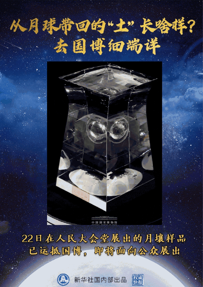 22日在人民大会堂展出的月壤样品已运抵国博,即将面向公众展出。届时大家可以#近距离一睹月壤真容#。