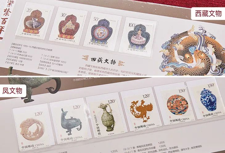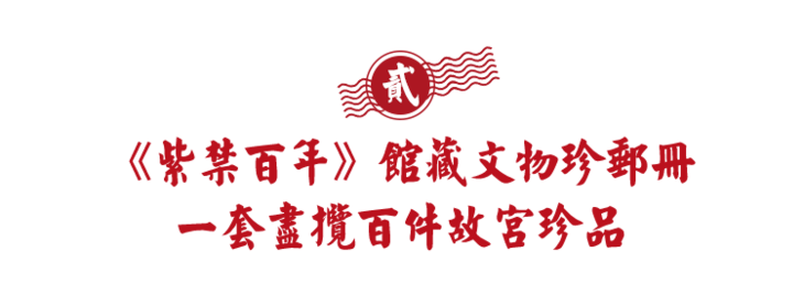 另一册《紫禁百年》馆藏文物珍邮册共有100枚传世国宝文物珍邮,被藏家称为“纸上故宫博物院”。
