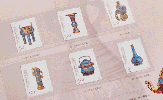 有燕京八绝之一的景泰蓝、来自六家博物馆的金铜佛造像、首次将运用唐卡绘画元素的唐卡邮票、青铜器、瓷器、玉石、漆器……方寸之间将故宫馆藏的传世之宝展现。