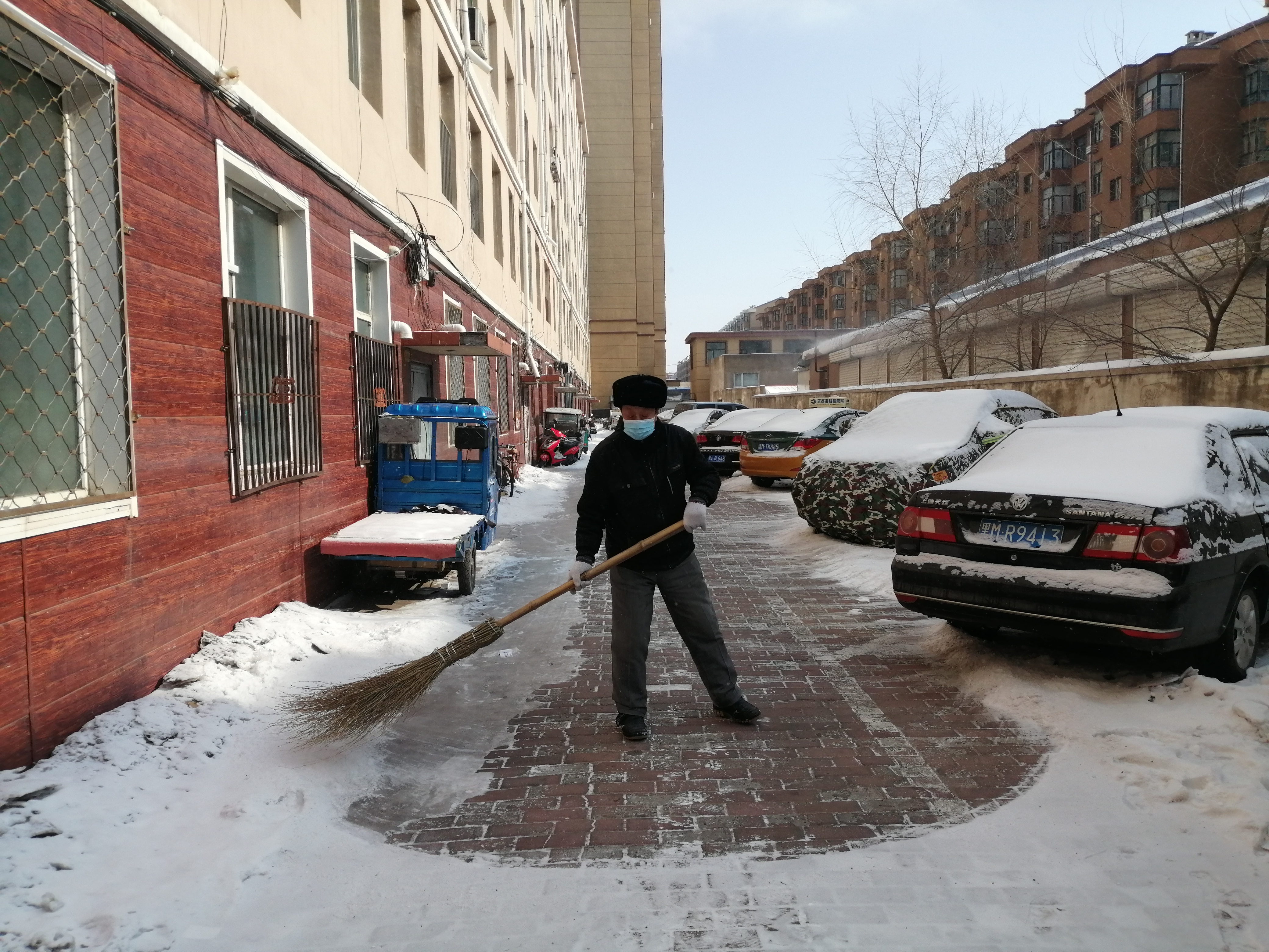 ↑22日一早,望奎县前进街道希望小区居民下楼扫雪。