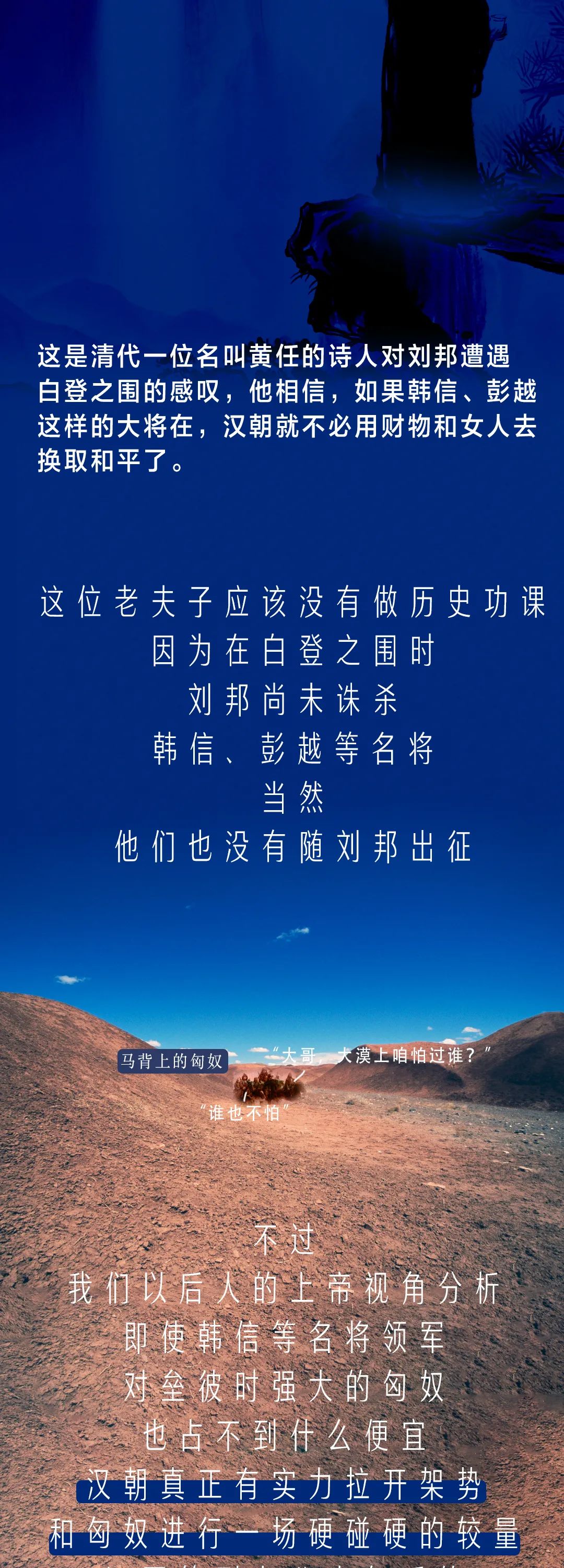 局势很明了,双方都想赶紧结束这场无聊的比赛,因此,汉军突围成功更像是刘邦和冒顿的一种心理默契。