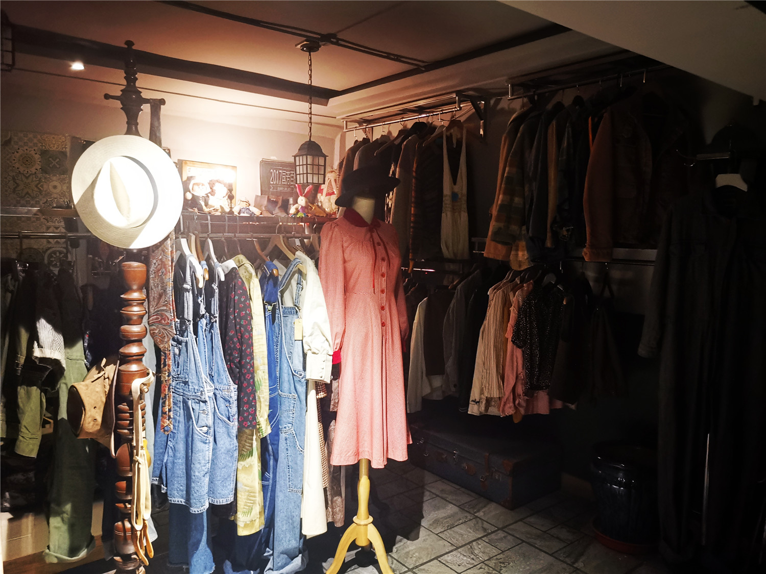 杨乐专营二手商品的精品店内,货架上摆放着各式复古衣衫。受访者供图