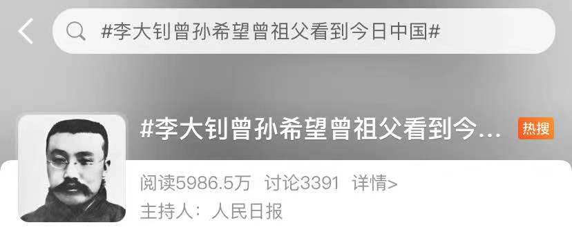 大年初一,在北京台春晚舞台上,剧中李大钊和赵纫兰的扮演者,以及李大钊先生的第三代和第四代后人,李亚中老人和他的儿子李雄飞表演了节目《觉醒年代》。