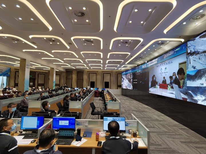 测试活动期间,坐落于北京冬奥组委首钢办公区的指挥部首次亮相。四块大屏连通各个比赛场馆,八个内设机构覆盖重点业务领域,指挥机构囊括城市运行保障,指挥部将在冬奥会赛时成为冬奥主运行中心。