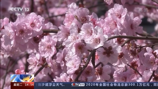 不只是武汉大学,位于汉口的江滩公园里,早樱在蓝天白云映衬下分外娇艳,与梅花、玉兰、红叶李竞相绽放,一派生机盎然。