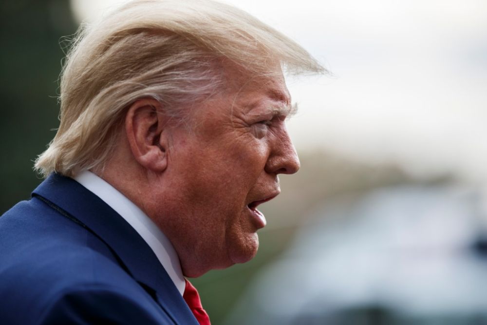 2019年10月25日,时任美国总统特朗普在华盛顿对媒体发表讲话。(新华社发,沈霆摄)