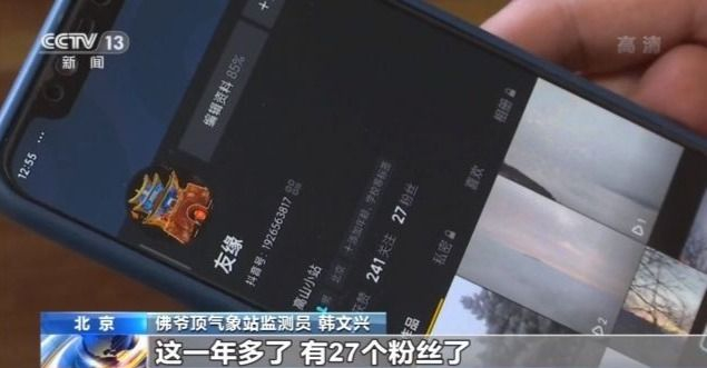 佛爷顶气象站监测员 韩文兴:你瞧这是云海,还有日出,这一年多了,有27个粉丝了。