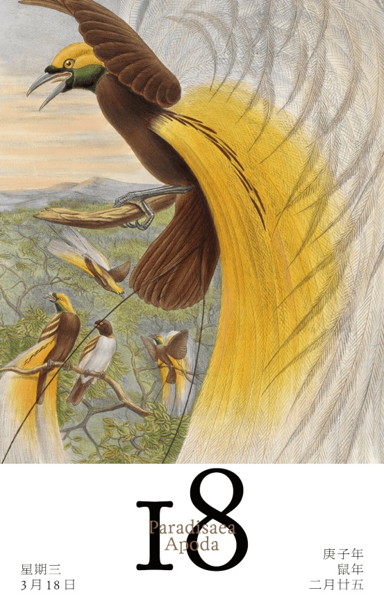 现在你看到的这张精美的插画出自英国鸟类学家约翰·古尔德的著作《新几内亚及巴布亚鸟类》,发行于1875年。