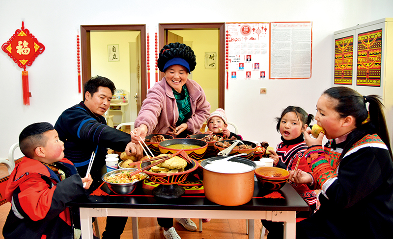 2月17日,巴木玉布木夫妇在外出打工前和孩子们吃了一顿团圆饭 周科摄/本刊