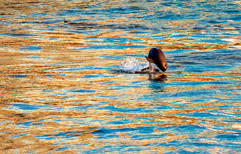 之后,杨河每隔几天就要去葛洲坝下游镇江阁、三江口及胭脂坝等地江边“蹲守”长江江豚。“我最多一次拍到5头江豚同时浮出水面,还拍到过小江豚紧贴母亲鳍下吃奶的画面。”杨河说。