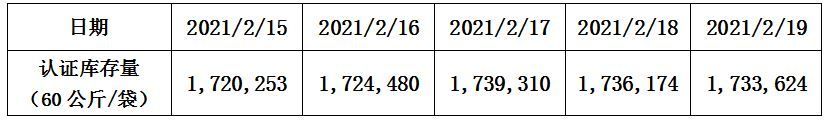 ICE(纽约)“C”型咖啡认证库存量表