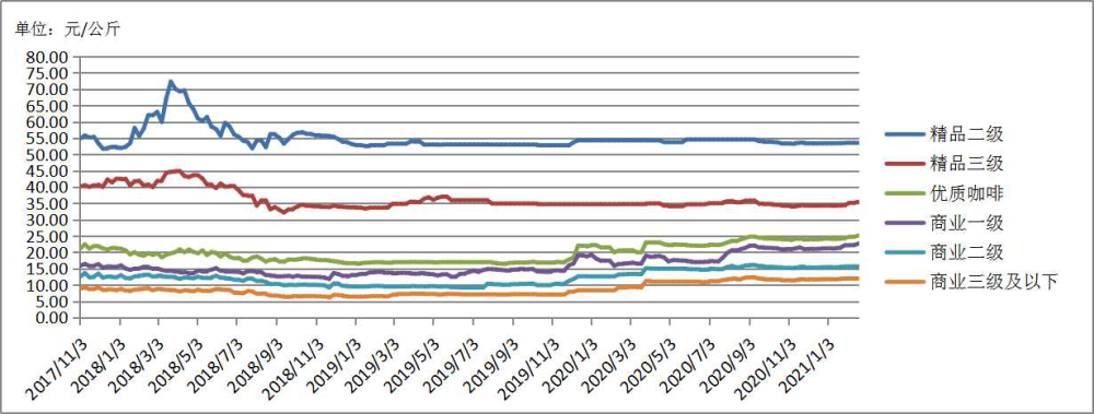 图2:云南(普洱)咖啡单品均价