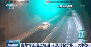 前几天(2月18日),在京台高速福建南平境内一隧道内,一辆轿车因司机疲劳驾驶,撞上了隧道壁。事故发生后,司机没有及时在后方放置警示牌,导致后车撞上了这辆轿车,发生二次事故。