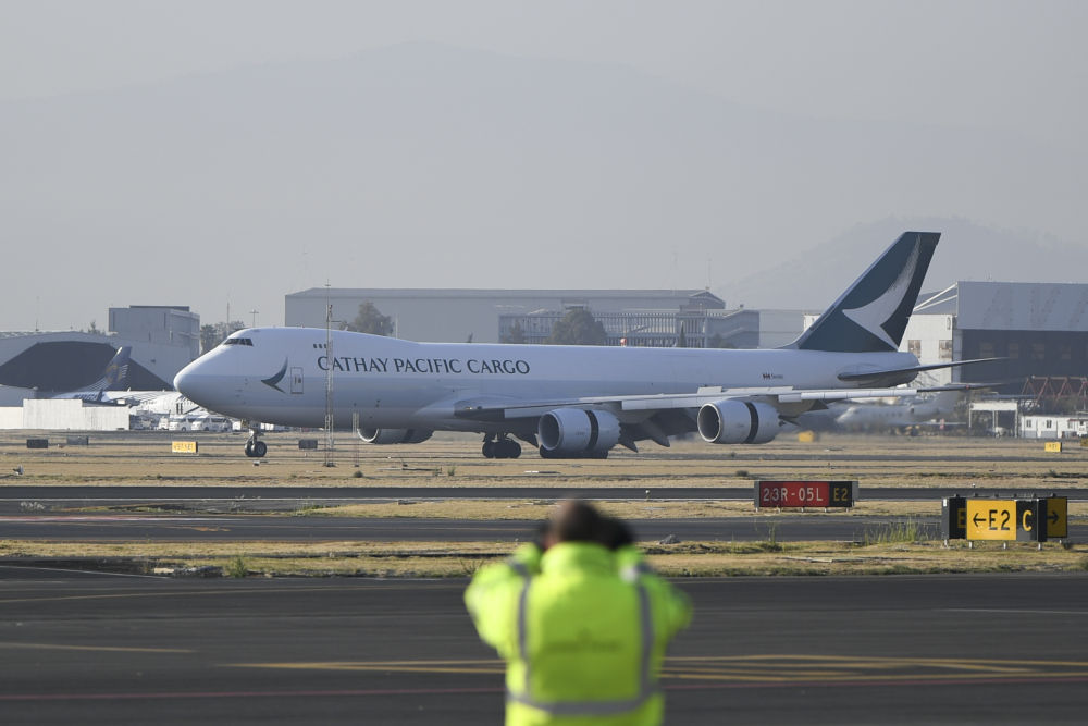 2月20日,载有中国科兴新冠疫苗的飞机抵达墨西哥首都墨西哥城国际机场。新华社记者辛悦卫摄