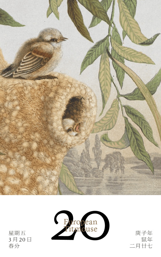 你看到的这幅插画出自《伦巴第鸟巢的自然历史》,出版于1865年。在画面上,有一只小山雀正在鸟巢里叽叽喳喳地叫着,而另一只山雀栖息在一个形状奇特的鸟巢上方。
