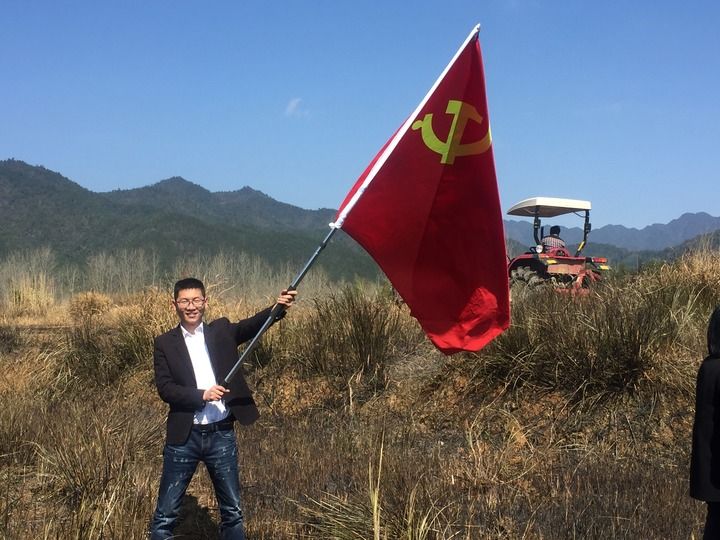 2018年春,吴应谱参加主题党日活动,和大家一起为村里新建的蚕桑基地锄草整地。(修水县委宣传部提供)