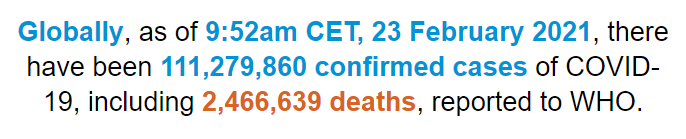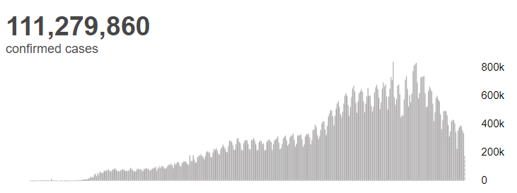 世卫组织:全球新冠肺炎确诊病例超过1.112亿例