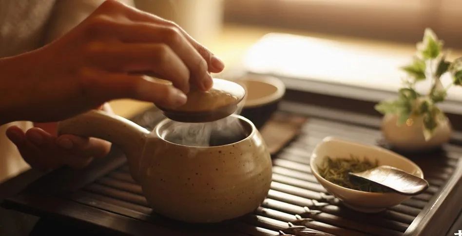 见面后,两位师父先是坐下,然后两个人一起泡茶。