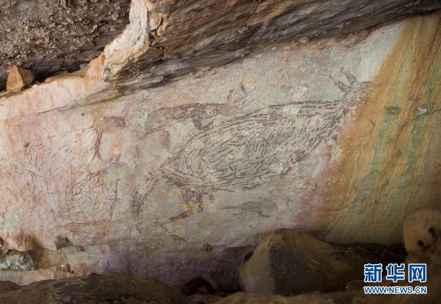 这是2016年7月15日在澳大利亚金伯利地区拍摄的袋鼠岩画。新华社发(彼得·韦斯摄)