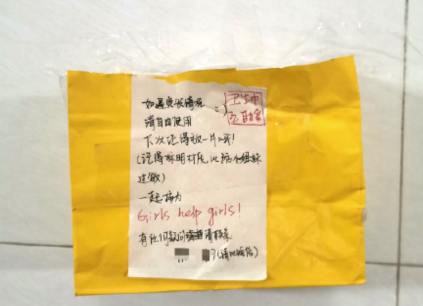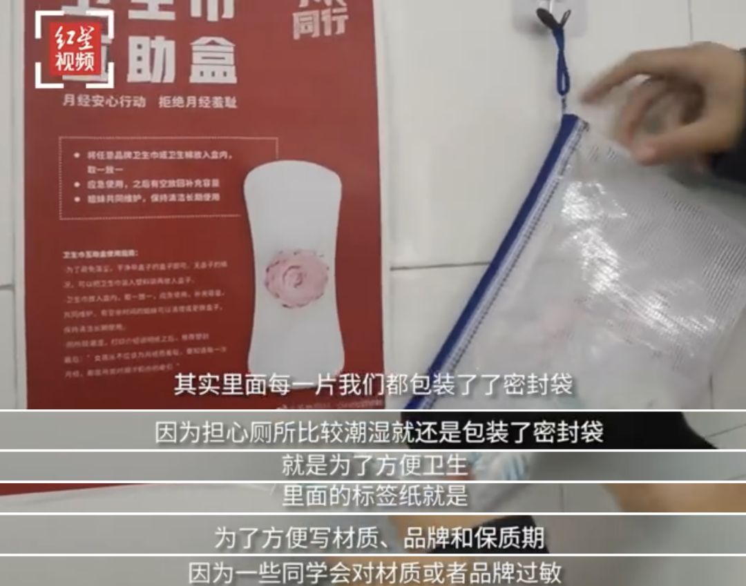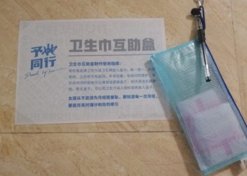 而这项活动发起后不久,在诸多大学的女厕所都多了这样一个互助箱。