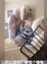 和她聊天,还给她梳头,病房里,三个老人开心的像小姑娘一样。