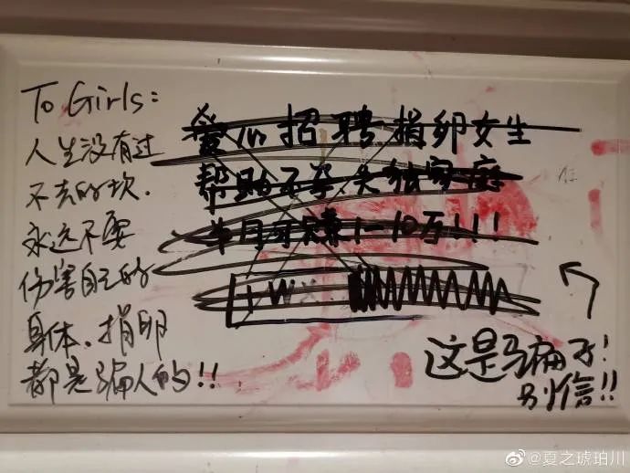 面对这些对女生的赤裸裸恶意,她们用自己心爱的口红,涂掉广告,写下了“好好爱自己”。