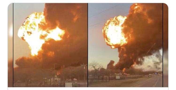 当地时间2月23日6时30分许,美国得克萨斯州一辆装有燃油以及化学物品的火车与货车发生碰撞,目前伤亡人数不详。(央视记者 许骁)