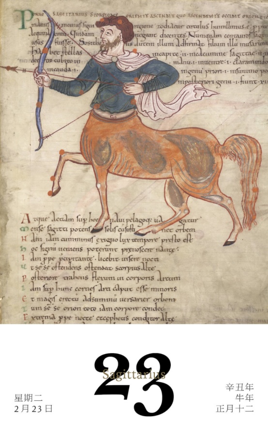 这幅图是正在拉弓射箭的半人马,出自11世纪的英格兰手稿。