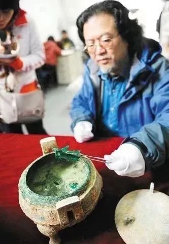 陕西省考古研究院工作人员将铜鼎和铜锺打开时,惊奇地发现,鼎内有保存完好的骨头汤,锺内有酒,其中骨头汤为我国首次发现。