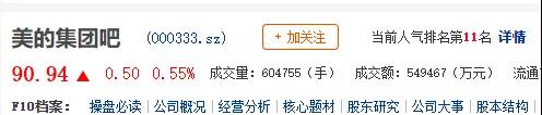 当天晚间,美的集团股吧沸腾,截至9点半,其人气排名冲至第11位。