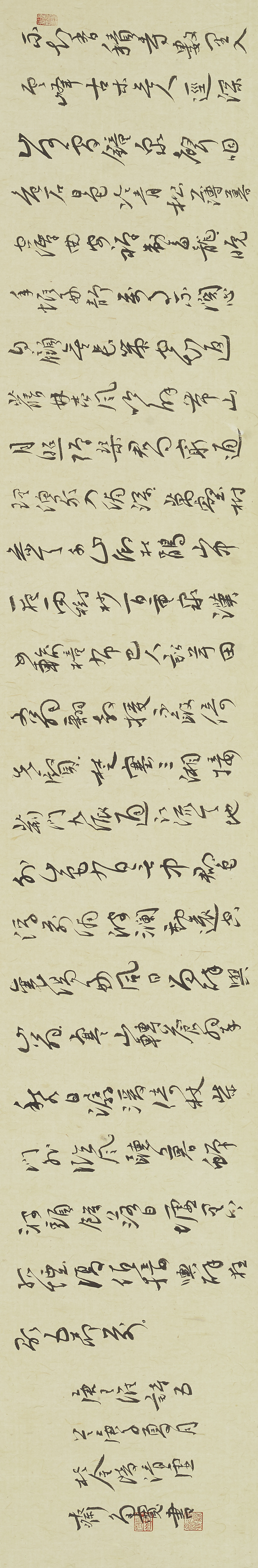 李多宽常以书写的方式来读书,他特别喜欢抄写传统传承下来的最原始的经典,如儒学中的《四书五经》、佛学中的《金刚经》、道家学派的《道德经》等,他曾为总结这些经典举办过“书写经典”的展览。几十年的抄典练书让他体会到,这样的方式恰恰契合了古人写书法与做学问长期并行,久而久之之后才能做到的融会贯通。“只有融会贯通之后,书法才能体现人文精神。写字仅仅依靠技巧是到不了道的地步,学问不打通,书法是高不到哪儿去的。”