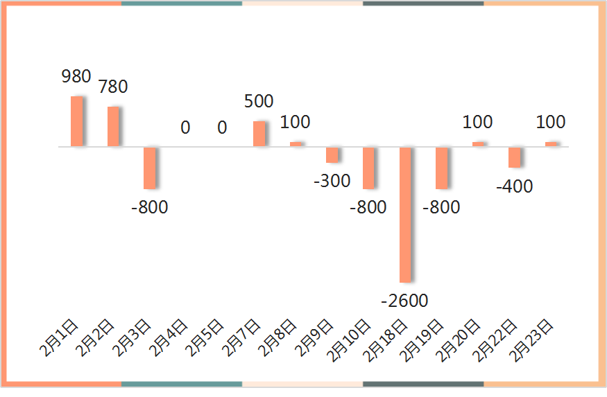 2月1日-23日逆回购操作资金净投放情况 制图:张千千