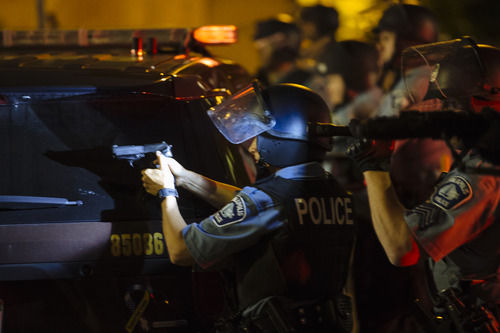2020年5月31日,在美国明尼苏达州明尼阿波利斯市,一名警察举起手枪。新华社发(安格斯·亚历山大摄)