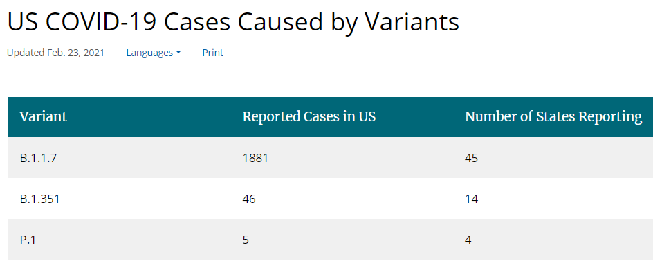 事实上,近期各类变异新冠病毒在全美范围内的快速传播,给美国疫情防控带来了新的严峻挑战。CDC最新数据显示,截至当地时间23日,全美已有1932例变异新冠病毒感染病例,其中1881例感染了在英国发现的变异病毒。