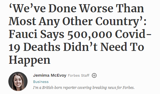 福奇日前接受采访时指出,政治分歧是导致美国病亡比例如此惊人的重要原因,这一切本不该发生。作为一个高度发达的国家,美国做得“比大多数国家都糟”。